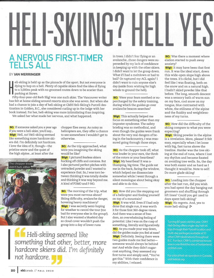 HELI-SKIING? HELL YES, A Nervous First-Timer Tells All by Ian Merringer - Skiing powder in the alpine is a revelation. It felt easy, especially when I let loose with big, fast turns above the treeline. ...