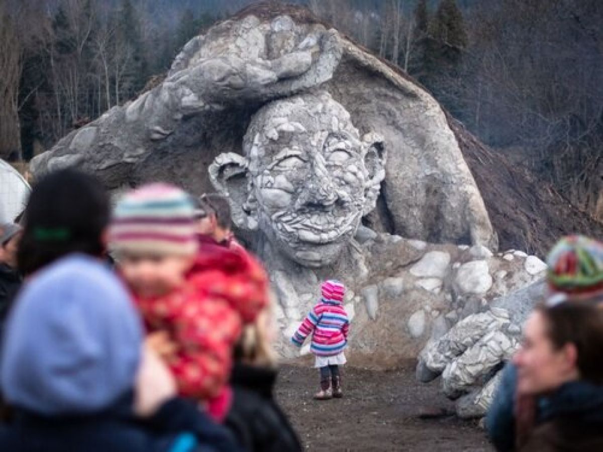 THREE ARTISTS ARE HIDING GIANT STATUES IN BC'S FORESTS by Carolyn Heller - Leaning on a walking stick, a stone man sits on a bench in the woods, outside the village of Kaslo.